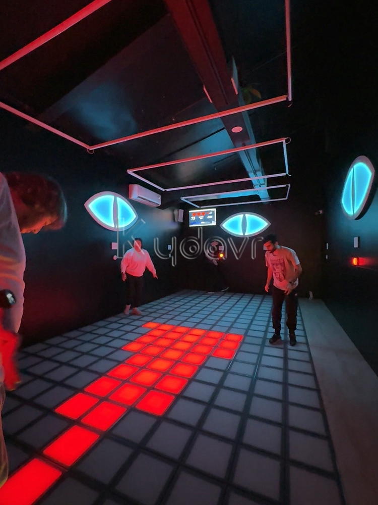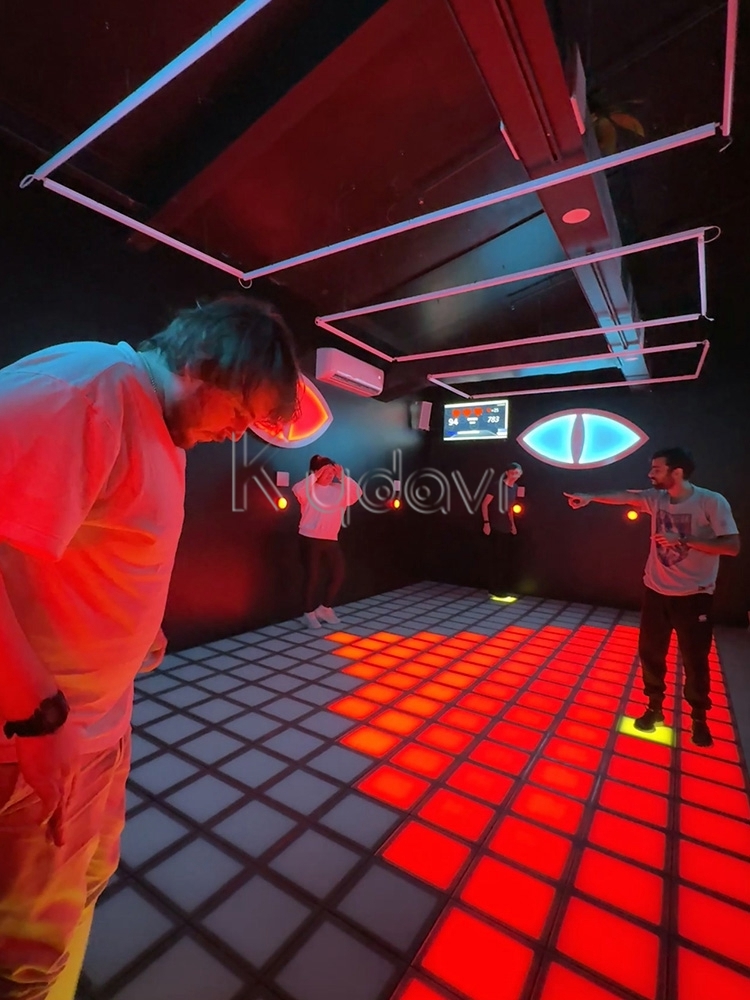 This room consists of over 20 display screens with buttons, and players are required to do so within the specified time frame Click the corresponding button as required and use a fixed pillar to avoid being detected by four electronic eyes with motion sensing, in order to complete different levels of challenges